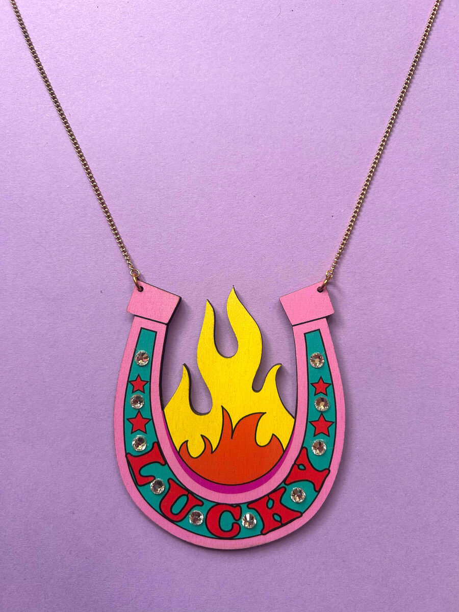 Yeehaw! Stay lucky with our Lucky Horseshoe statement necklace - hand embellished with super sparkly gems.